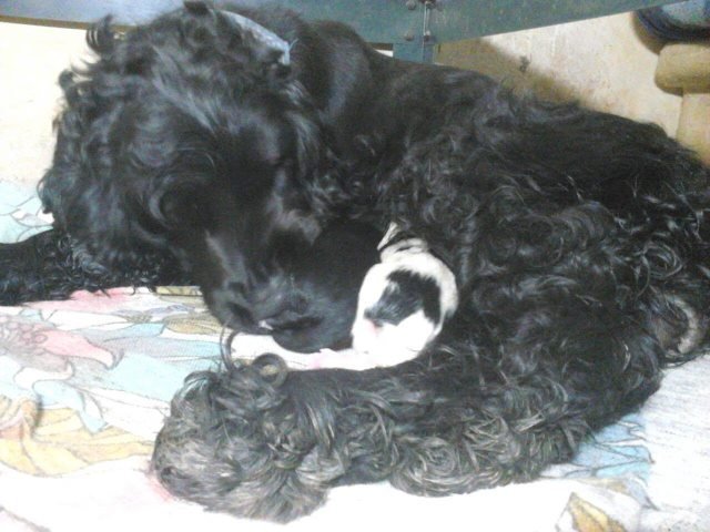 Tina wurde für uns aus der Perrera geholt. Wir wollten sie dann kastrieren lassen, aber der Arzt sagte, es sind Welpen im Bauch und sie sind schon zu ausgebildet... zwei Tage später waren sie dann da