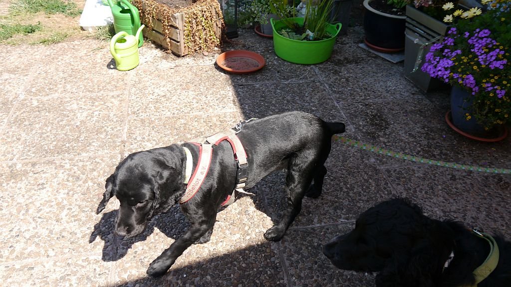 Hier auf der PS wurde ich ganz lieb von den anderen Fellnasen begrüßt....NUR..der Sammy ist mir ein wenig zu aufdringlich. Ich glaube...der ist