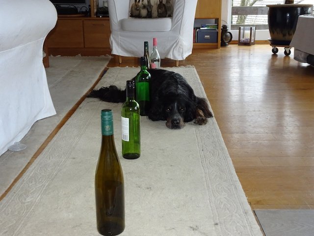 Mit Frauchen um die Flaschen, ohne Frauchen um die Flaschen, und dann wird sie wieder nicht fertig mit ihren Fotos ... geht's vielleicht bald weiter?