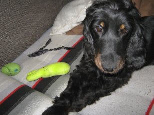 Aiko, Hündin, schwarz mit loh, geb. Januar 16