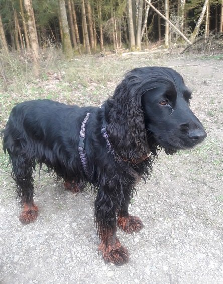 Spaß beiseite: erst war sie im Tümpel und anschließend in einem Haufen roter Tennisplatzsand.
