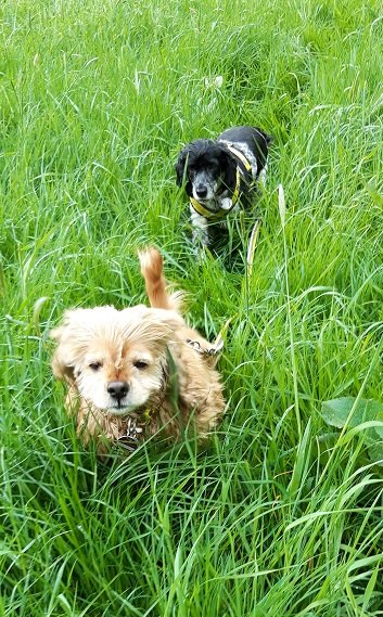Allerdings muss Trolli im Moment ohne Noa sonntags zum Agility mit mir fahren. Noas Rücken macht wieder Probleme, so dass erstmal Schonung und Physiotherapie angesagt waren. Zum Glück konnten wir uns nach zwei Wochen aus den Schmerzmitteln ausschleichen und Noa ist schon wieder übermütig. Aber Treppe und Springen sind weiterhin Tabu. Wenn ich dann mit Trolli zurück komme, begrüßen sich die beiden, als wenn wir sie tagelang getrennt hätten. Wir haben wirklich Glück mit diesen beiden Süßen.