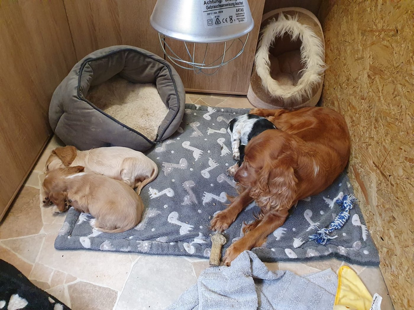 Ich finde es total schön, wie Stella zum ersten Mal ihre Mutterschaft geniessen kann. Sie legt sich zu ihren Welpen, spielt mit ihnen, kuschelt mit ihnen... all das, was Vermehrerhunde nie erleben dürfen...