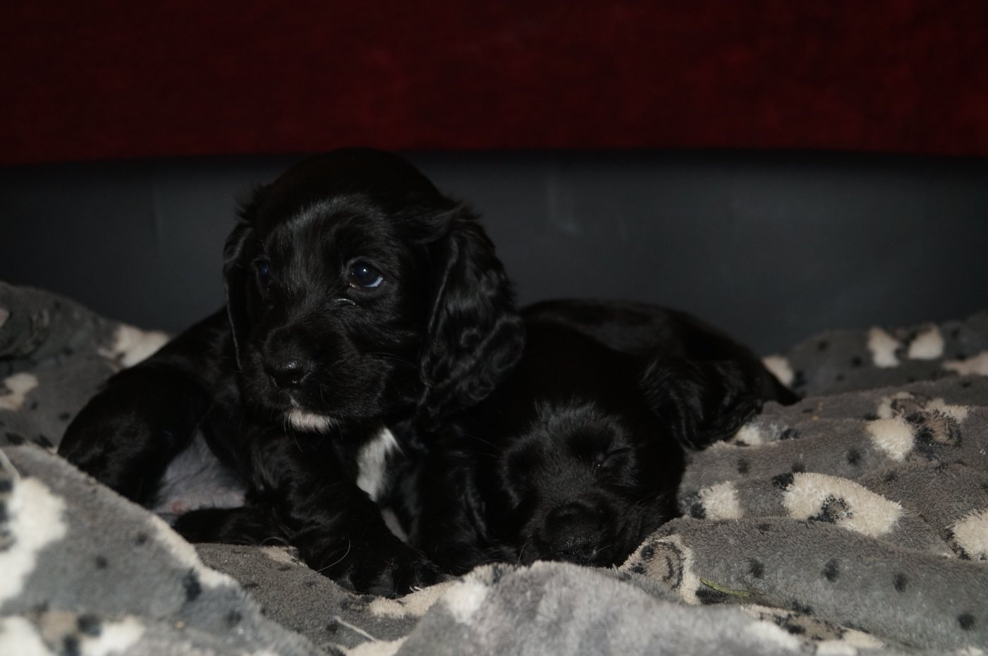 Sie haben alles gut weg gesteckt. Die Vier sind nach wie vor munter und aktiv im Haus unterwegs wie sonst auch. Die Onkel und Tanten Cocker bemühen sich ja sehr um die Kleinen und unterstützen die Mama und uns bei der Erziehung.