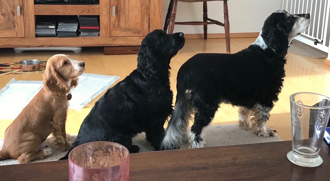 Er genießt sein Leben in einem "Drei-Hundegenerationen-Haushalt": Sunny (früher Sol) 15 Jahre, Marvel 4 Jahre und Inuki 4 Monate.