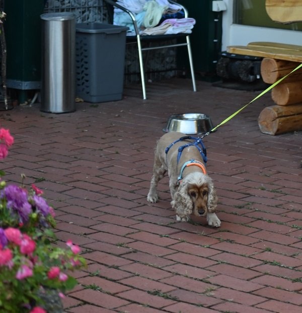 Herrchen hat einen Tisch reserviert und an diesem Abend war ein tolles Wetter.