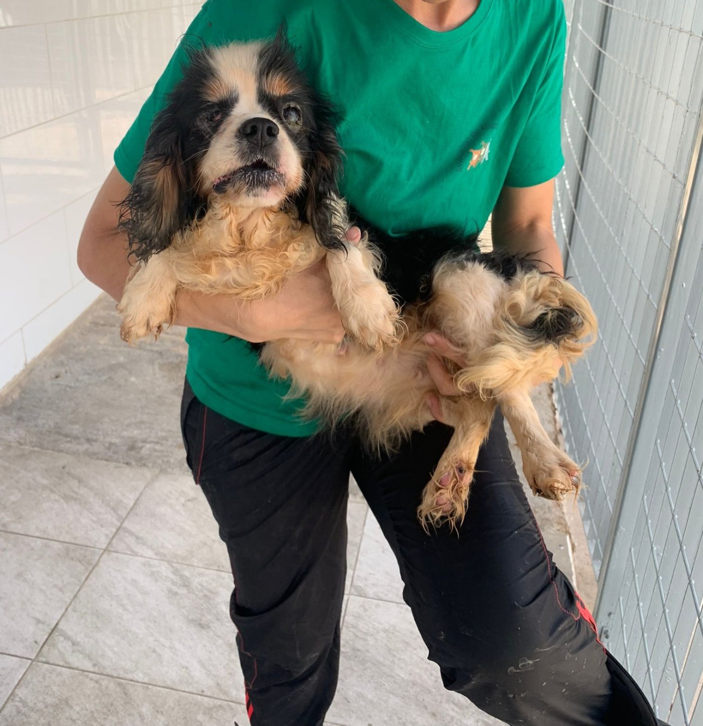 Agnes stammt aus einer Beschlagnahmung. Zusammen mit Cavaliere in Nood und einer Tierschutzorganisation vor Ort wurden die Hunde für uns reserviert. Agnes ist sehr kran und blind.