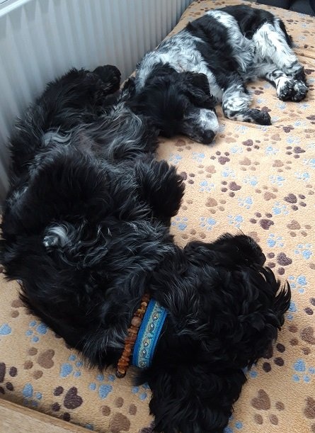 Im Urlaub sind die beiden sehr zusammen gerückt und liegen nun immer häufiger zusammen in einem Korb. Wir sind glücklich, Noa so mit Stella zu erleben, nachdem sie sich in ihrer Traurigkeit so sehr zurückgezogen hatte.