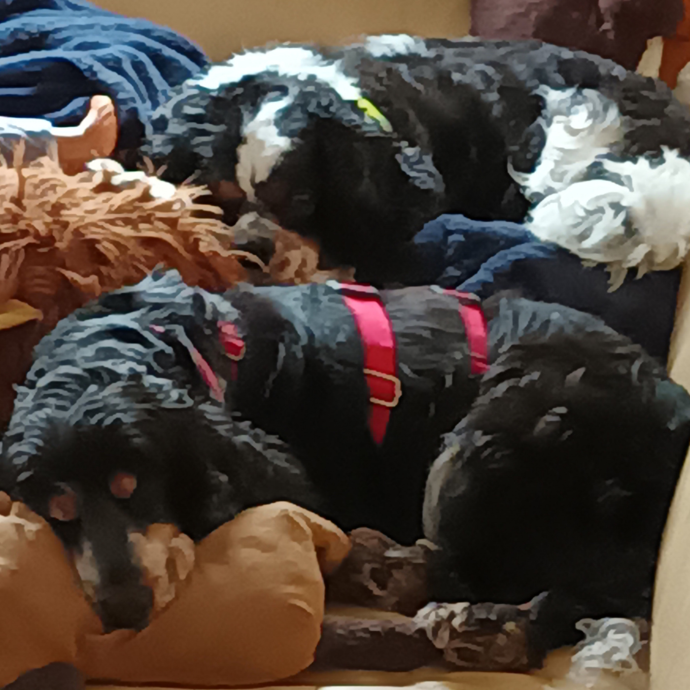 Mit unseren beiden kommt sie allerdings nicht ganz so gut klar. Im großen und ganzen ignorieren sie sich - aber sie hat Tendenzen Milka anzuknurren. Da Milka das aber weder sieht noch hört, müssen wir das ganze mal im Auge behalten. Wir werden sehen, was da noch kommt.