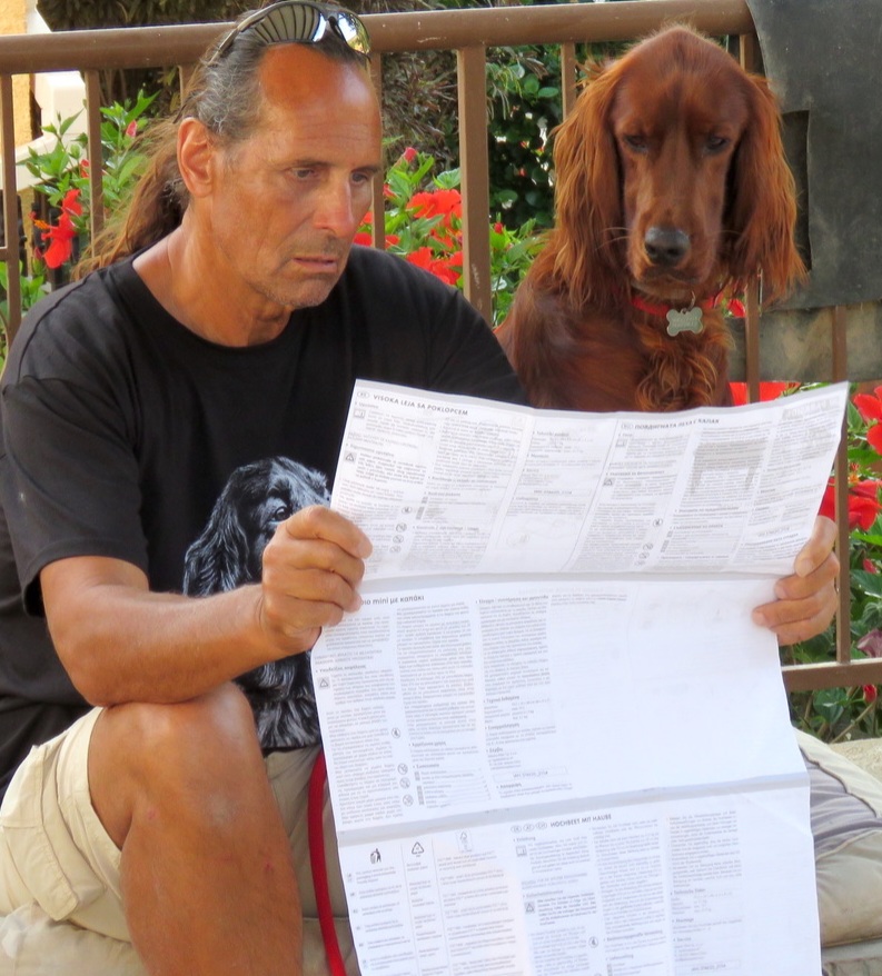 Und hier mit seinem Herrchen beim gemeinsamen Studieren der Gebrauchsanleitung. :a37