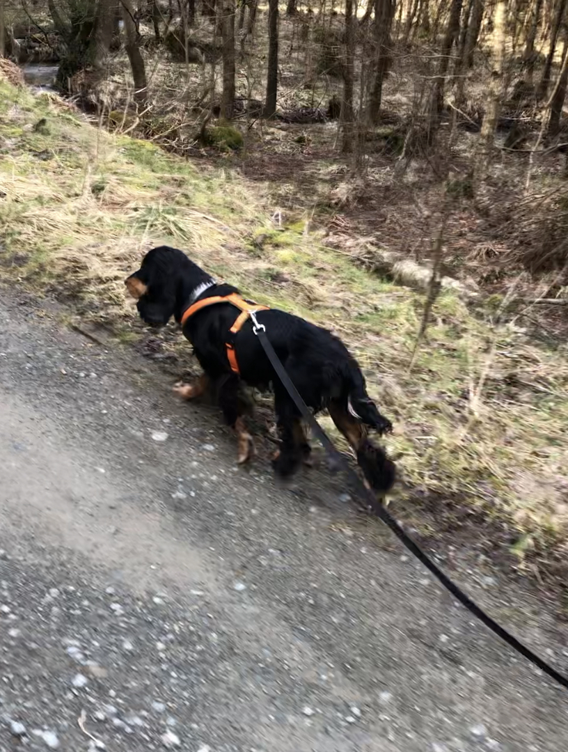 Im Wald und an ruhigen Orten genießt Audrey das Laufen an der Schleppleine.