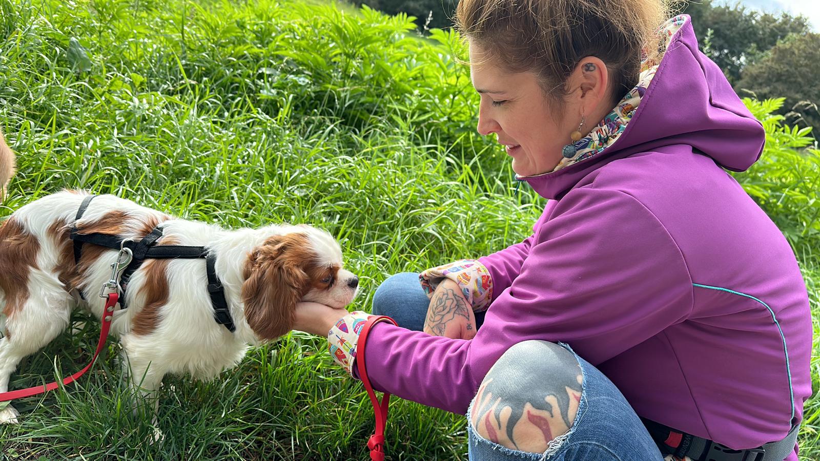 Geduldig zeigt ihm die Pflegemama was zu einem glücklichen Hundeleben dazu gehört
