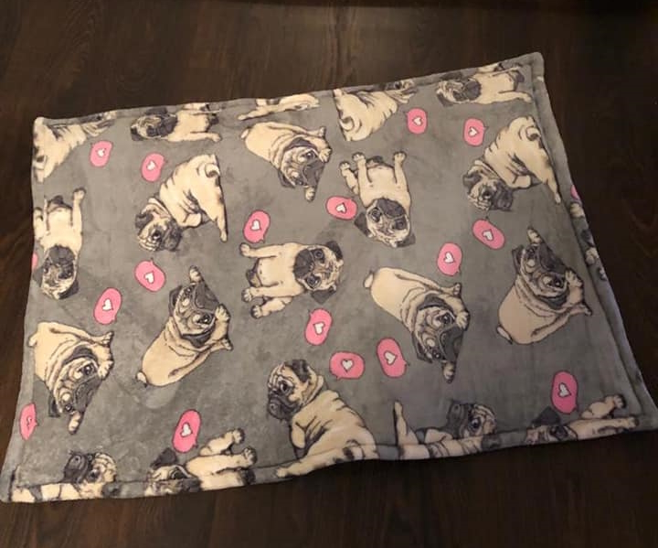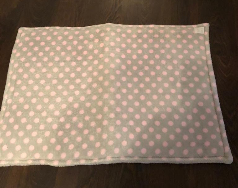 Die Decken kosten 25 Euro und haben eine Größe von ca 70x100 cm. Sie sind mit dickem Vlies unterlegt und rundherum eingefasst. Sie sind waschbar bei 40 Grad und Trockner geeignet.