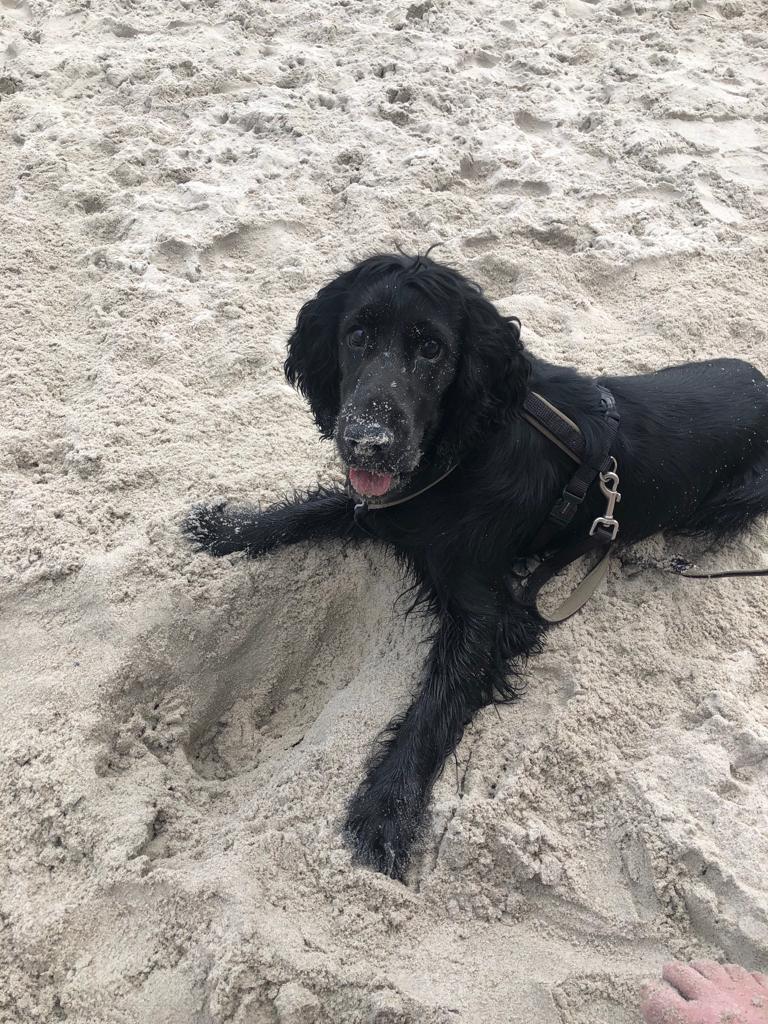Finns Frauchen hat sich bei uns gemeldet und uns ein paar Fotos vom Urlaub an der Ostsee zukommen lassen. Er hatte großen Spaß am Strand und mittlerweile geht er bis zum Bauch ins Wasser.