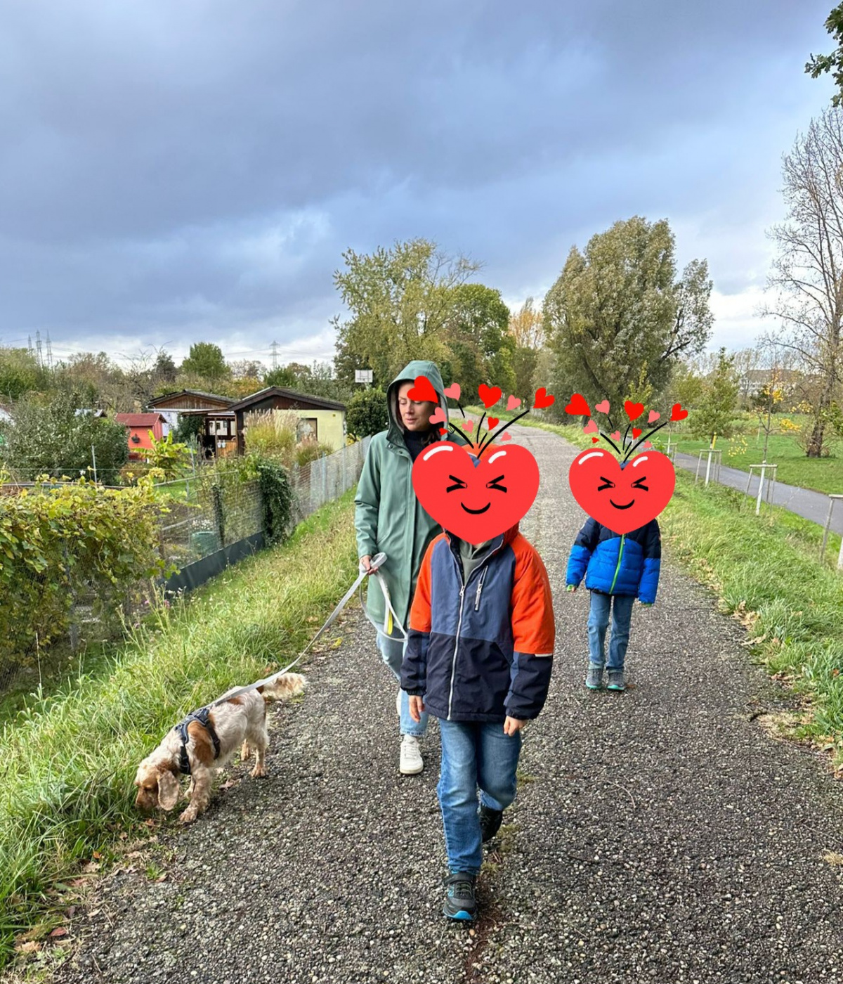 Coco und seine Familie beim gemeinsamen Spaziergang.
