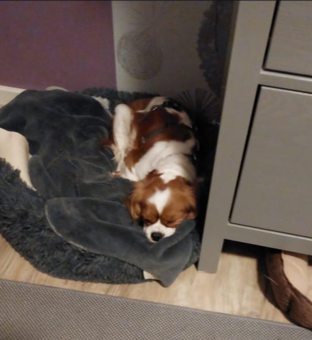 Natürlich schläft Amyra auch im Schlafzimmer und wenn ich eingeschlafen bin legt sie sich an meine Füße. Also nie mehr kalte Füße