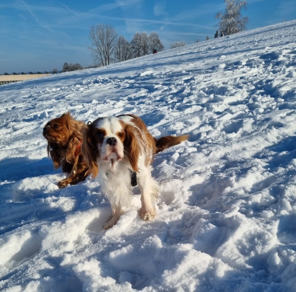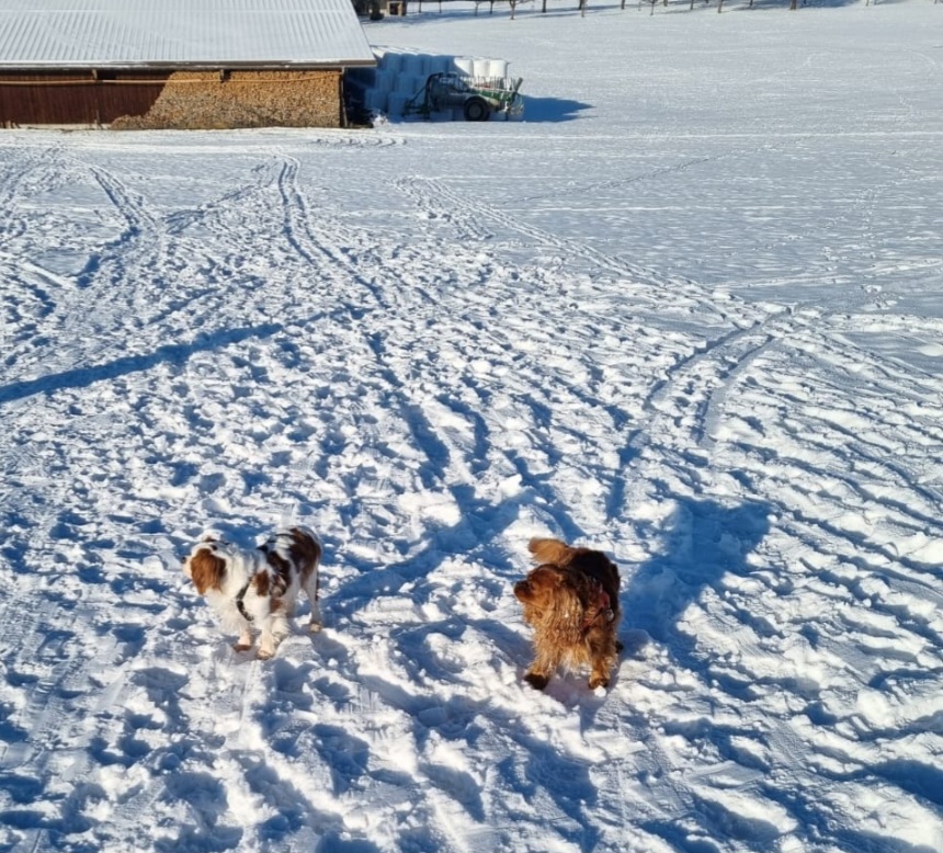 Bruno geniesst den ersten Schnee in seinem Leben. Immer an seiner Seite ist seine Freundin Balim