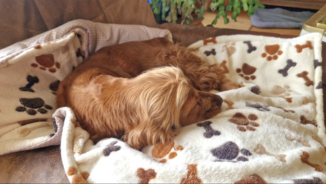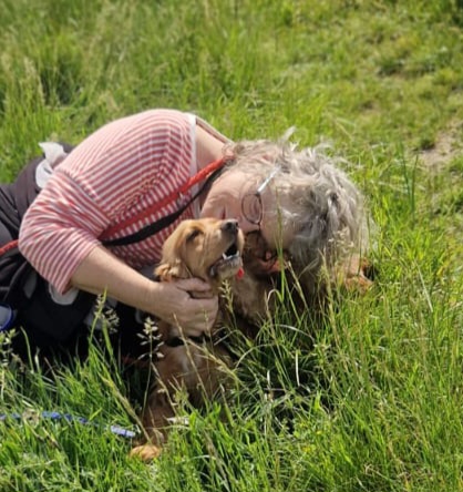 Abends zum Schlafen gehen kuschelt sie sich ganz dicht an sie ran um sie dann morgens abzuschlecken und dann freut sie sich wenn Frauchen aufwacht und sie wieder in einen Tag voller Abenteuer starten kann