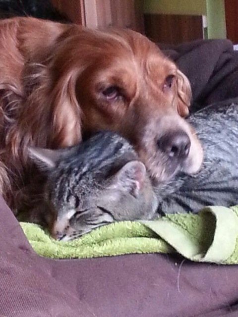 Elsy liebt es, mit der Katze zu kuscheln... oder besser gesagt: Frodo liebt es, mit Elsy zu kuscheln