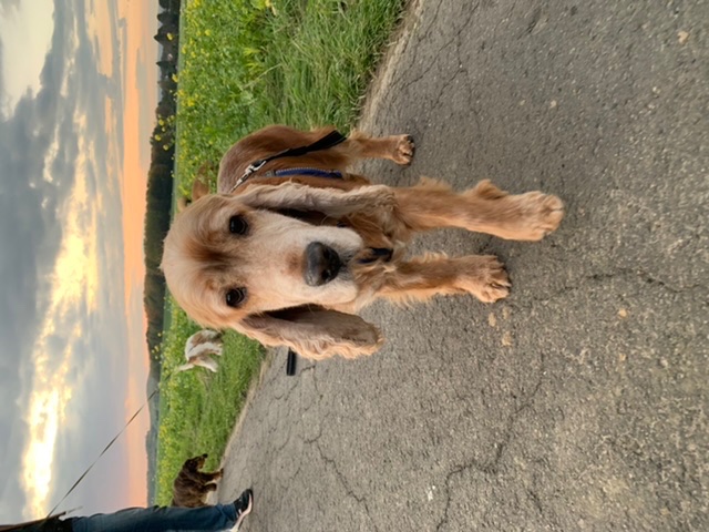 Er hat im Fell überall helle einzelne Haare. Er sieht aus wie eine Mischung aus roter Cocker und Schimmel. Also irgendwie jedenfalls. Heike meint auch, dass er älter aussieht. Liebe macht ja blind, ich denke er ist , ein gerade richtig gefärbter , kleiner Mann in seinen besten Jahren.