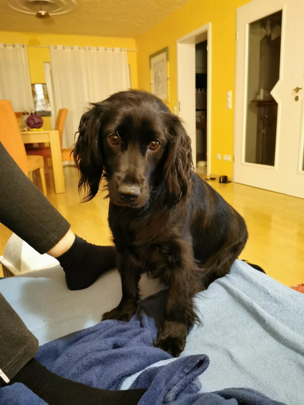 Im Moment machen ihr manche Dinge Angst, die sie nicht einordnen kann, und sie reagiert dann panisch und will flüchten. Aber heute, am dritten Tag, geht es schon besser. Wenn man ihr Schutz bietet beruhigt sie sich.