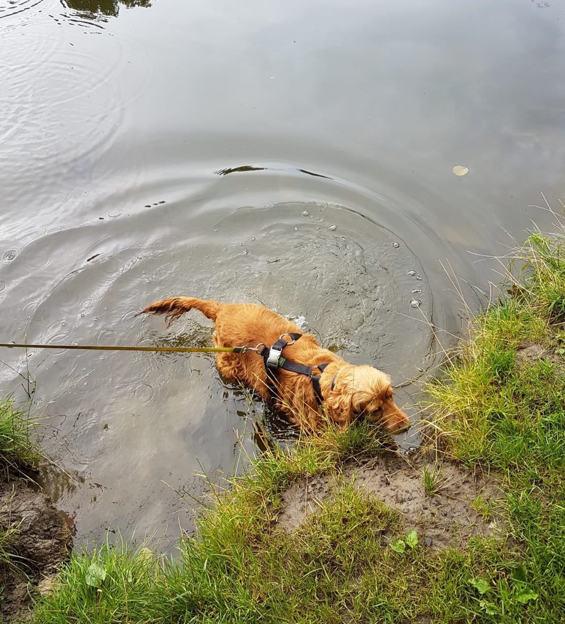 Heute war ich mal an einem See. Pflegefrauchen wollte ausprobieren, ob ich Wasserscheu bin