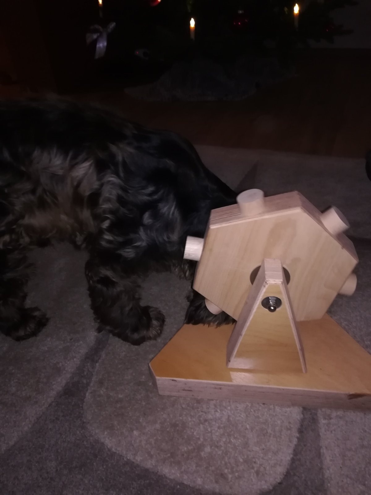 Aber dann hab ich gesehen, da kommen ja Entenleckerlis aus dem komischen Ding. Da hab ich aber aufgepasst was meine Menschen so machen das die Raus fliegen und ruckzuck hatte ich den Dreh raus. Wird wohl mein neues Lieblingsspielzeug.
