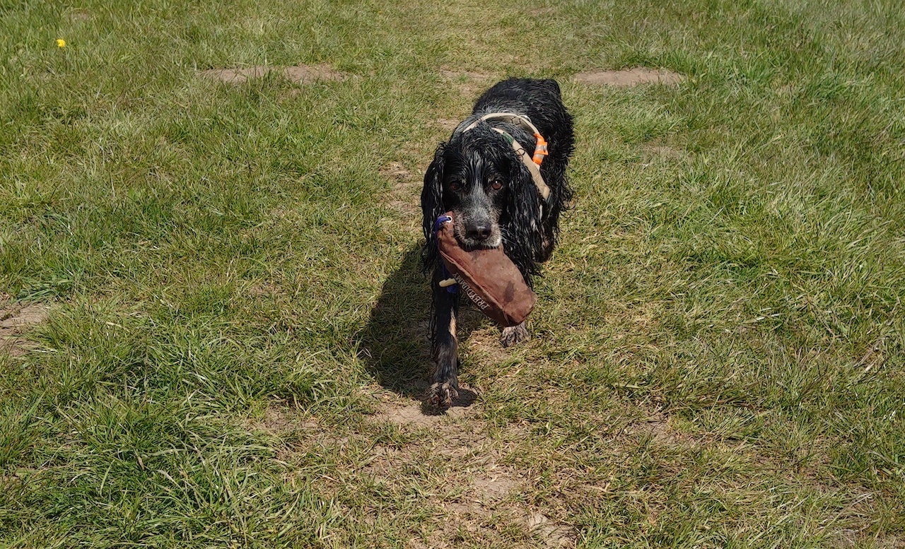 Und nach der Arbeit darf er dann den Futterbeutel tragen. Toll