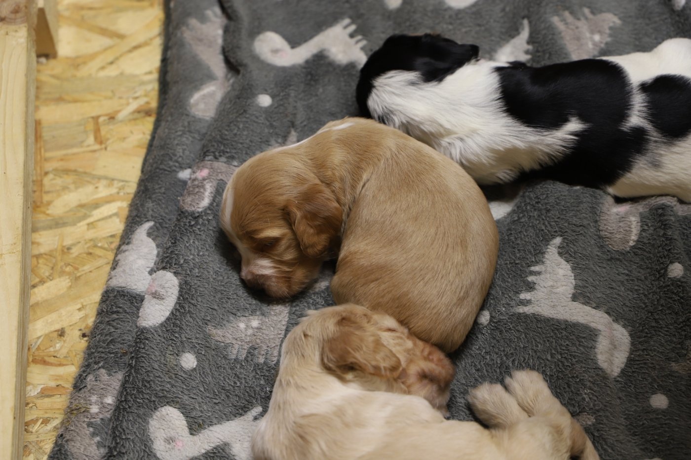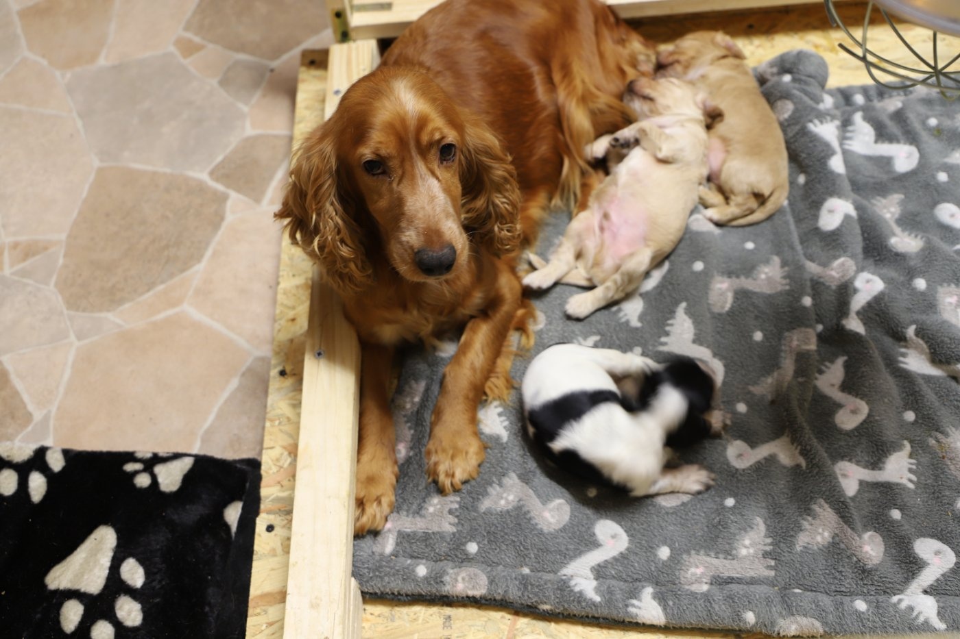 Hier kann man dann auch mal die Größe der Welpen sehen. Stella fällt aber auch unter die Kategorie "zierliche Cockerdame"