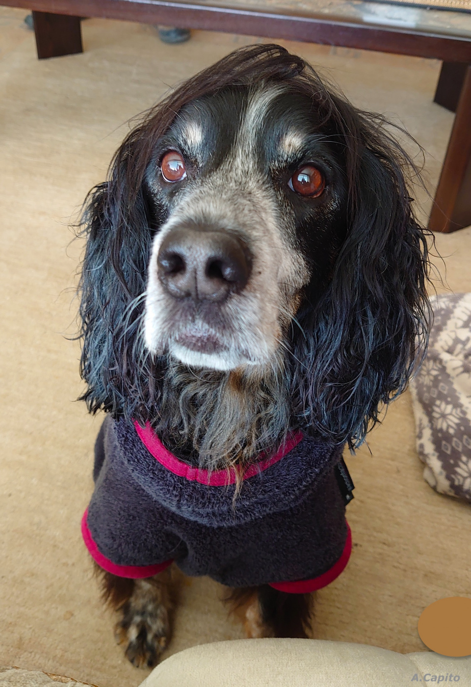 Auch bei Regenwetter gehen wir Gassi. Mit diesem Foto möchten wir uns nochmals bei Gerda bedanken, die Selam vor einigen Jahren diesen Regenmantel "passend gemacht" hat. Später folgten noch wunderschöne Decken.