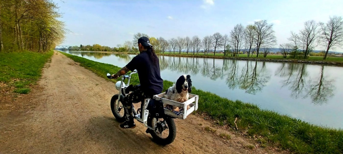 Wir haben auch schon überlegt, ob Selam in einem Fahrradhänger mitfahren würde, vermuten aber, dass wir wohl ein Lastenrad kaufen müssten, damit er immer vornean ist und den Überblick hat. Hinter uns laufen oder stehen und nicht sehen, was vorne passiert, mag er nicht sonderlich...