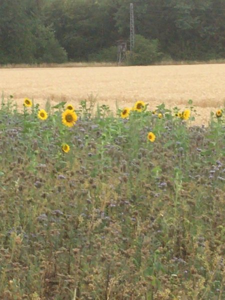 wir gehen dann auch immer an einem Feld mit Sonnenblumen vorbei