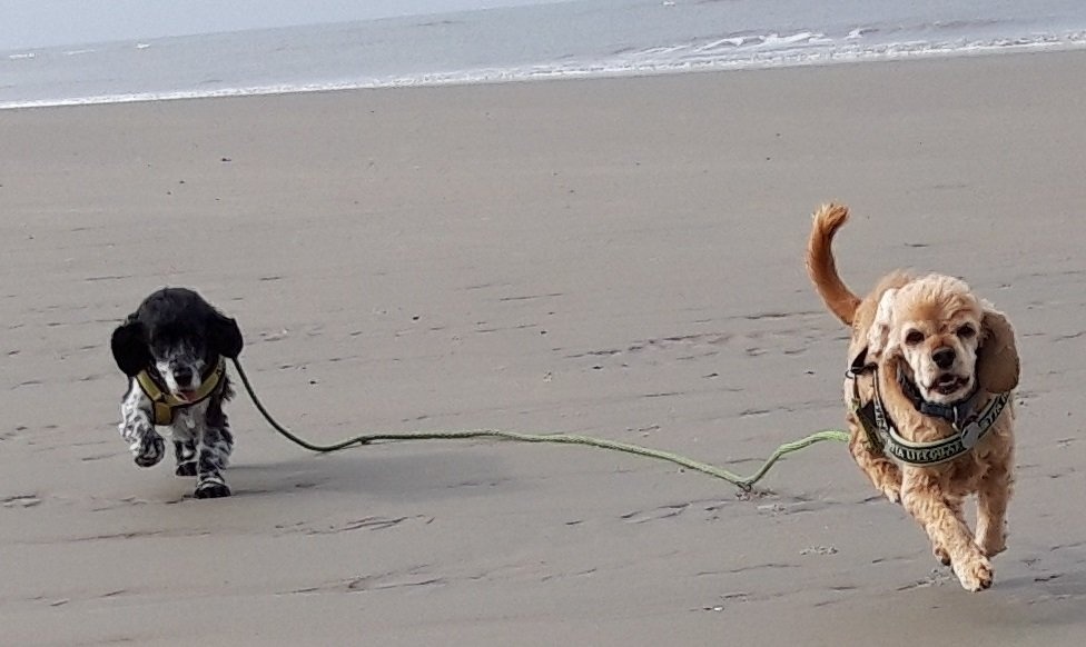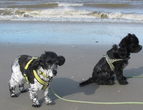 Am Strand fanden es beide herrlich. Dieses Mal konnten wir allerdings nicht beide an eine Langlaufleine legen, dazu ist Stella zu wirbelig, aber auch so hatten beide ihren Spaß.