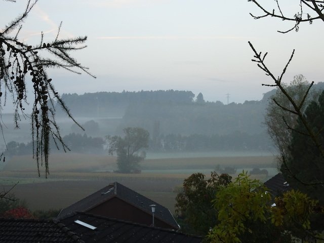 Aber diese Fotos mussten uuuunbedingt mit rein, ich konnte es nicht verhindern. Das hier mag ich schon lieber. Und, habt Ihr mich schon entdeckt? Der erste Nebelmorgen, naja, eigentlich ist es ja noch kein richtiger Nebel. Frauchen hat mir nämlich gesagt, wenn's mal richtig Nebel hat,