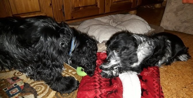 Im Urlaub sind die beiden sehr zusammen gerückt und liegen nun immer häufiger zusammen in einem Korb. Wir sind glücklich, Noa so mit Stella zu erleben, nachdem sie sich in ihrer Traurigkeit so sehr zurückgezogen hatte.
