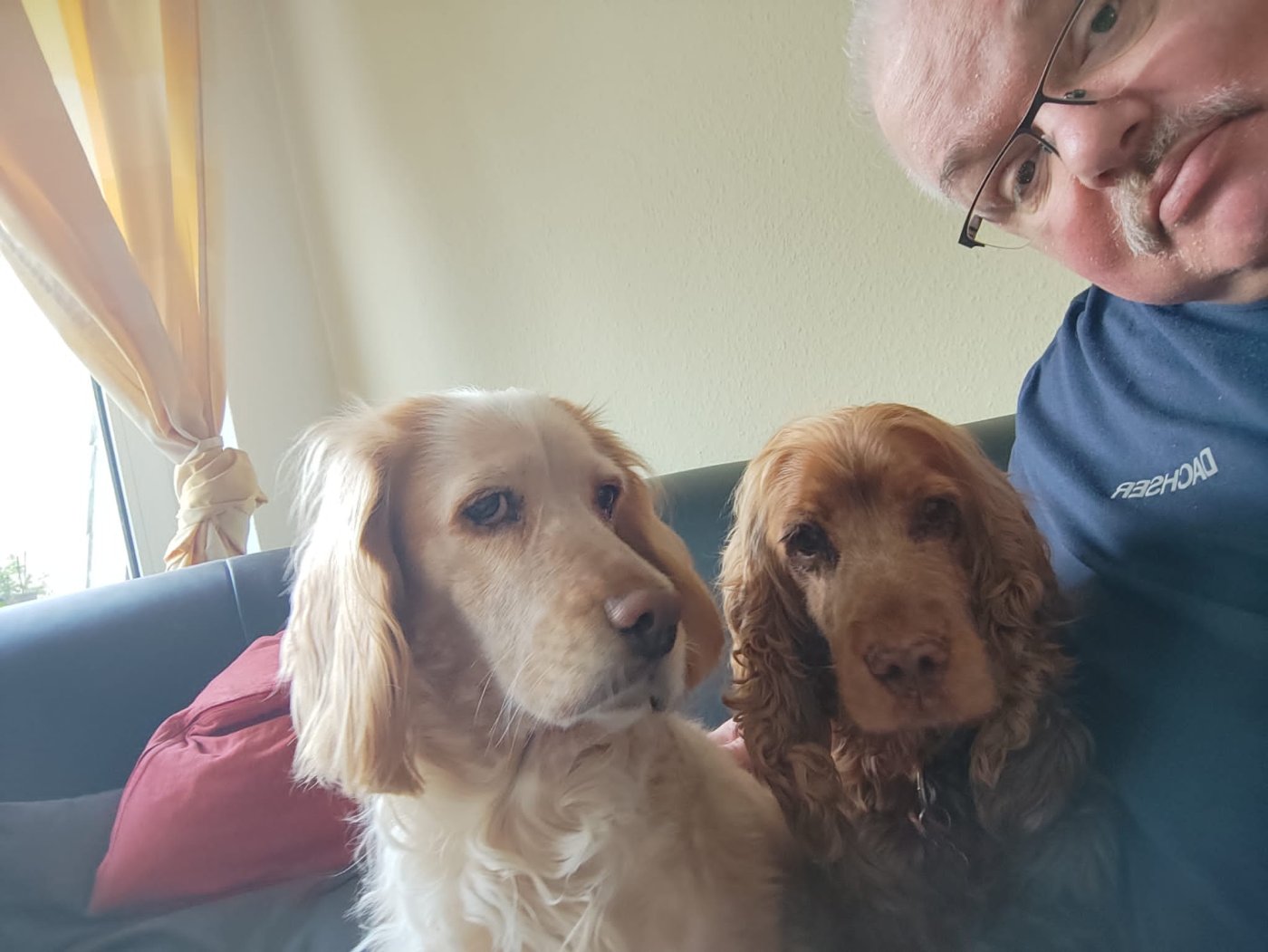 Emma ist Sonntag das erste Mal meinem Bruder begegnet und ehe er sich versah saß sie auf seinem Schoß. Eigentlich mag er Hunde nicht wirklich aber er hatte nen Teller mit Kuchen in der Hand.