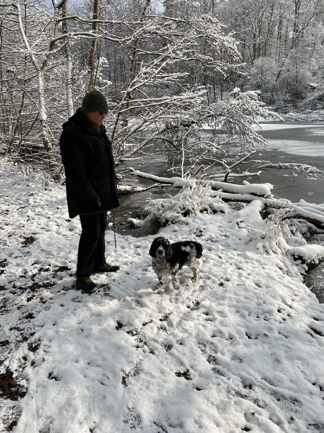 wo bleibt mein Leckerli Frauli??? Im Schnee hüpfen macht hungrig!