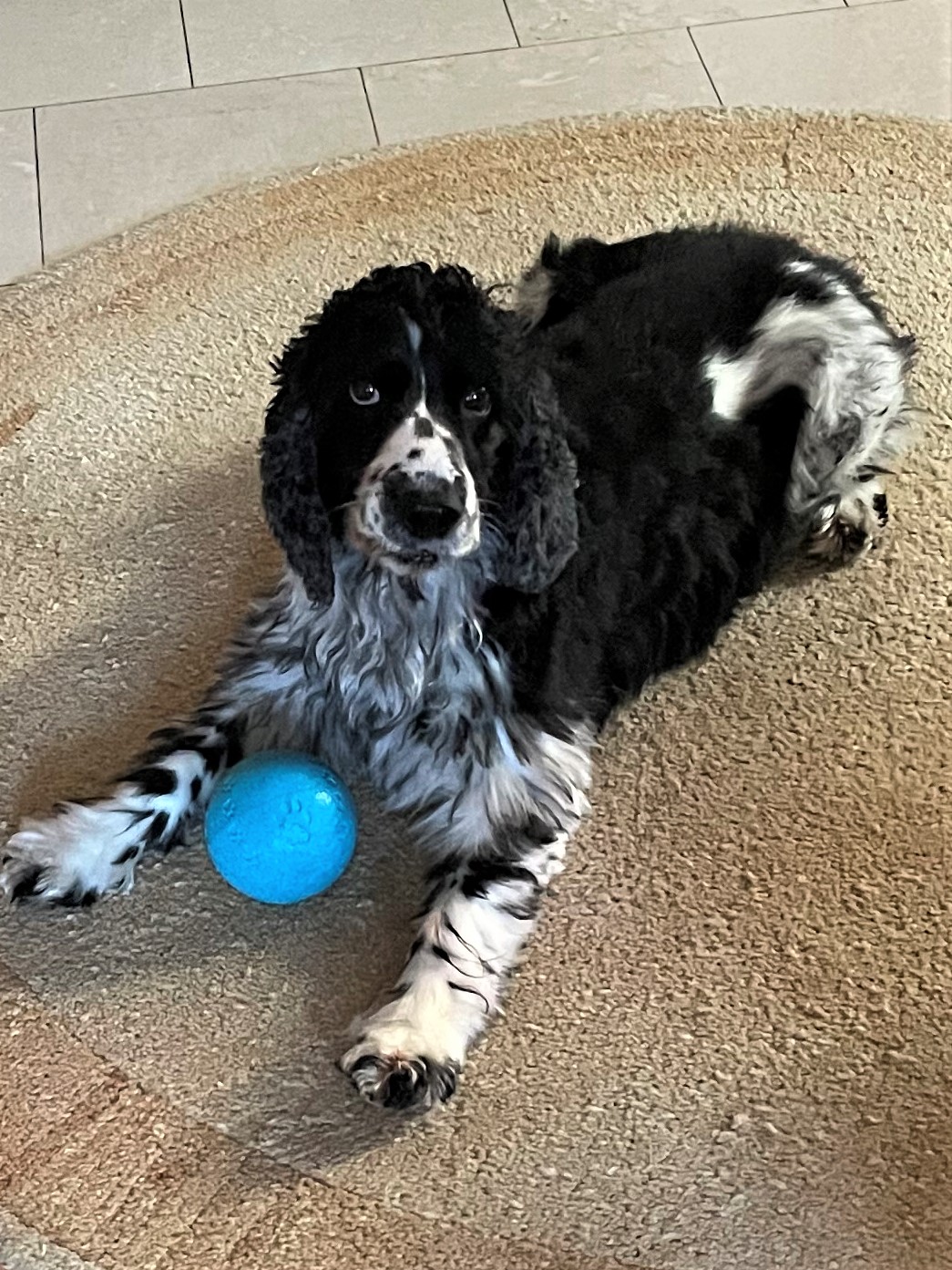 gib schon her, ist meins, ein Balli mit Leckerli drin, aber ich habe den Dreh ganz schnell raus gehabt und in kürzester Zeit waren die Leckerli in meinem Bauch verschwunden.
