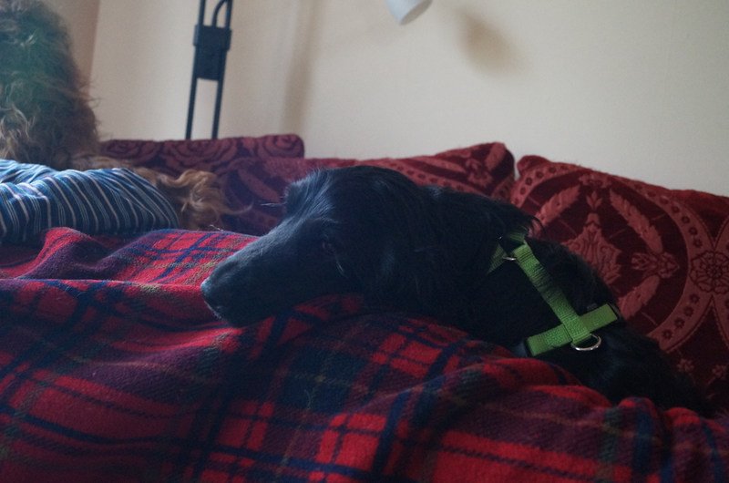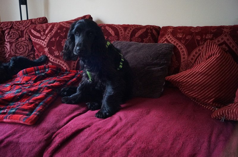 Unser erstes Trainingsziel war ihm beizubringen dass ein Geschirr nicht zum kaputt fressen da ist. Unter Beobachtung hat er das Klassenziel erreicht.