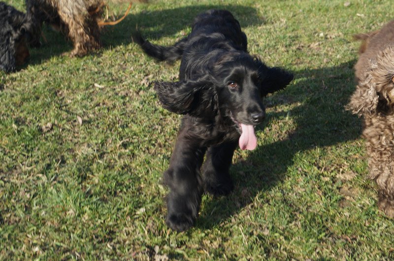 Misko durfte hier in seiner ersten Woche alles ganz in Ruhe kennen lernen. So ganz langsam traut er sich auch der Amelie Spielangebote zu machen. Mit Misaki spielt er ganz zart und mit Flossie (die gerade zu Besuch ist) rennen sie wie die Dollen durch den Garten und spielen "fang den Cocker".