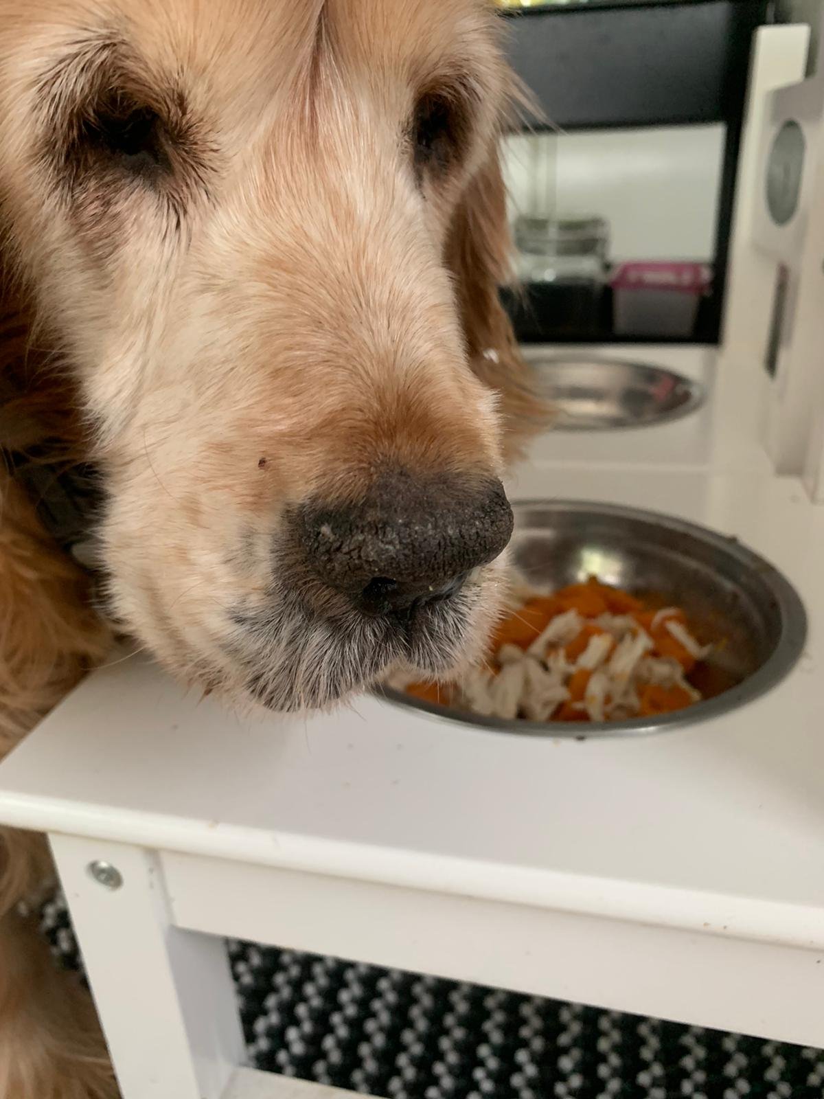 Wenn Mama kocht, dann haue ich besonders gut rein. Hier gabs frisches Hühnchen mit Möhre - da bleibt nichts über!!