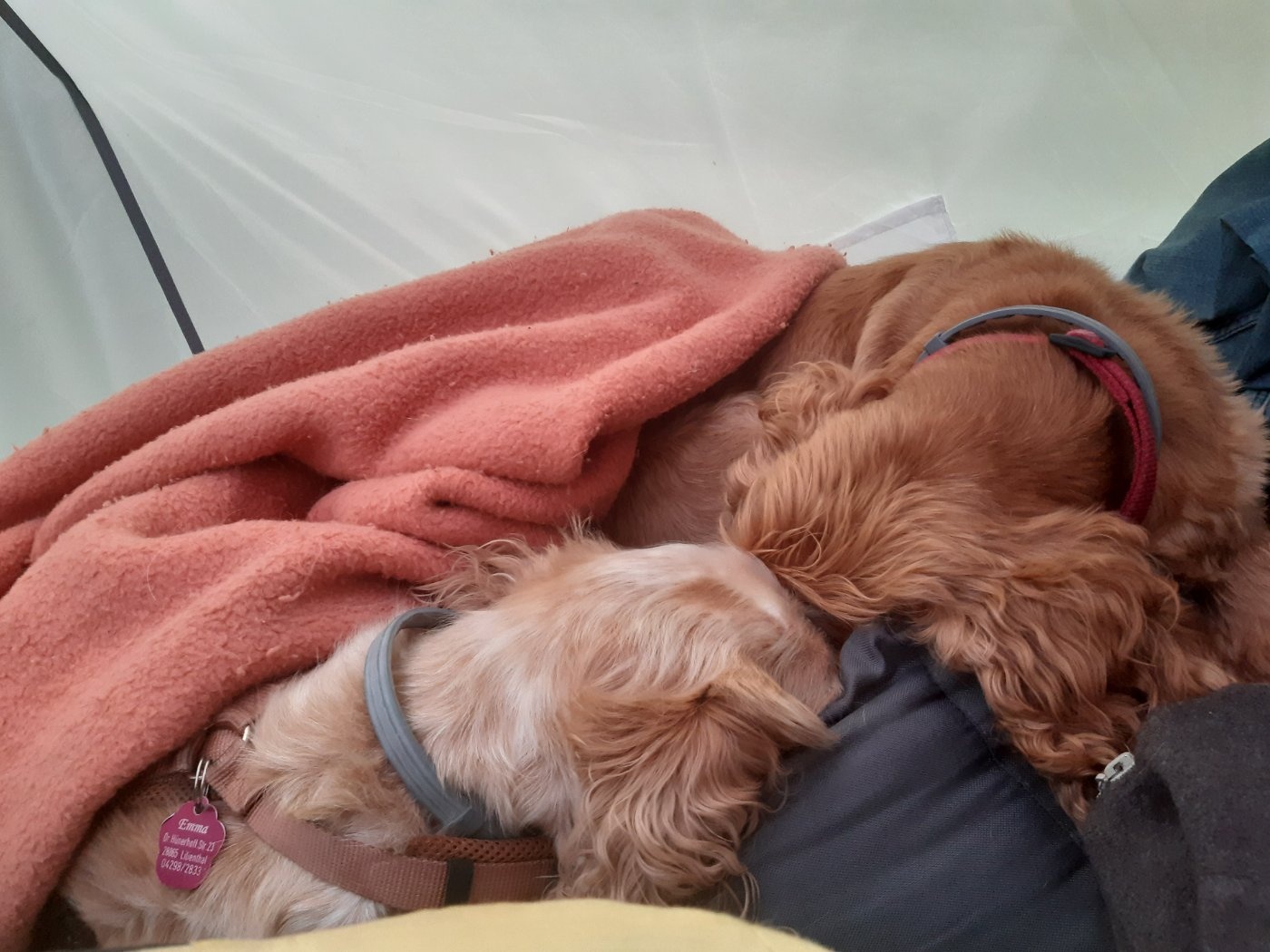 Das war schon an Pfingsten. Deshalb sind die Hunde auch zugedeckt, es war nachts ein wenig kalt trotz Körbchen .