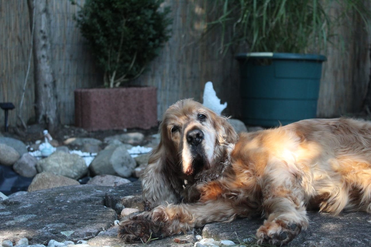 Hier ein paar Bilder von den Hunden und den neuen Teich. Die Hunde genießen die Sonne und die Ruhe.