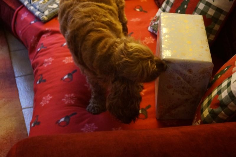 Der Zümi fiebert hier natürlich dem Weihnachtsfest entgegen. Und damit ihm die Zeit nicht zu lang wird, hat er auf das Christkind gesetzt. Das hat ihm natürlich prompt seinen Wunsch erfüllt und so durfte er sein Patenpaket bereits auspacken.