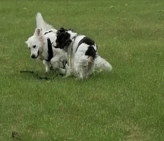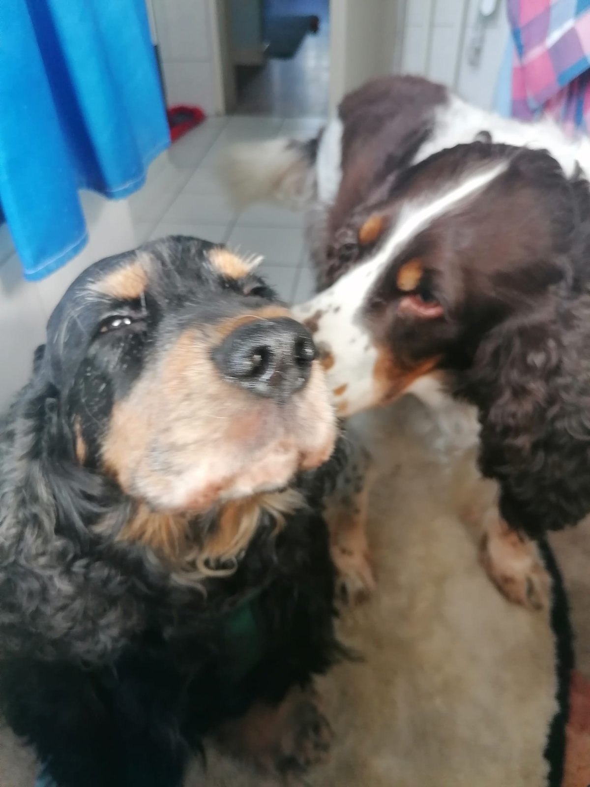 Bei uns ist alles ok. Jetzt können wir wieder draussen ohne Regen toben. Da wollte doch die Mama mit uns raus,bei dem ganz dollen Regen