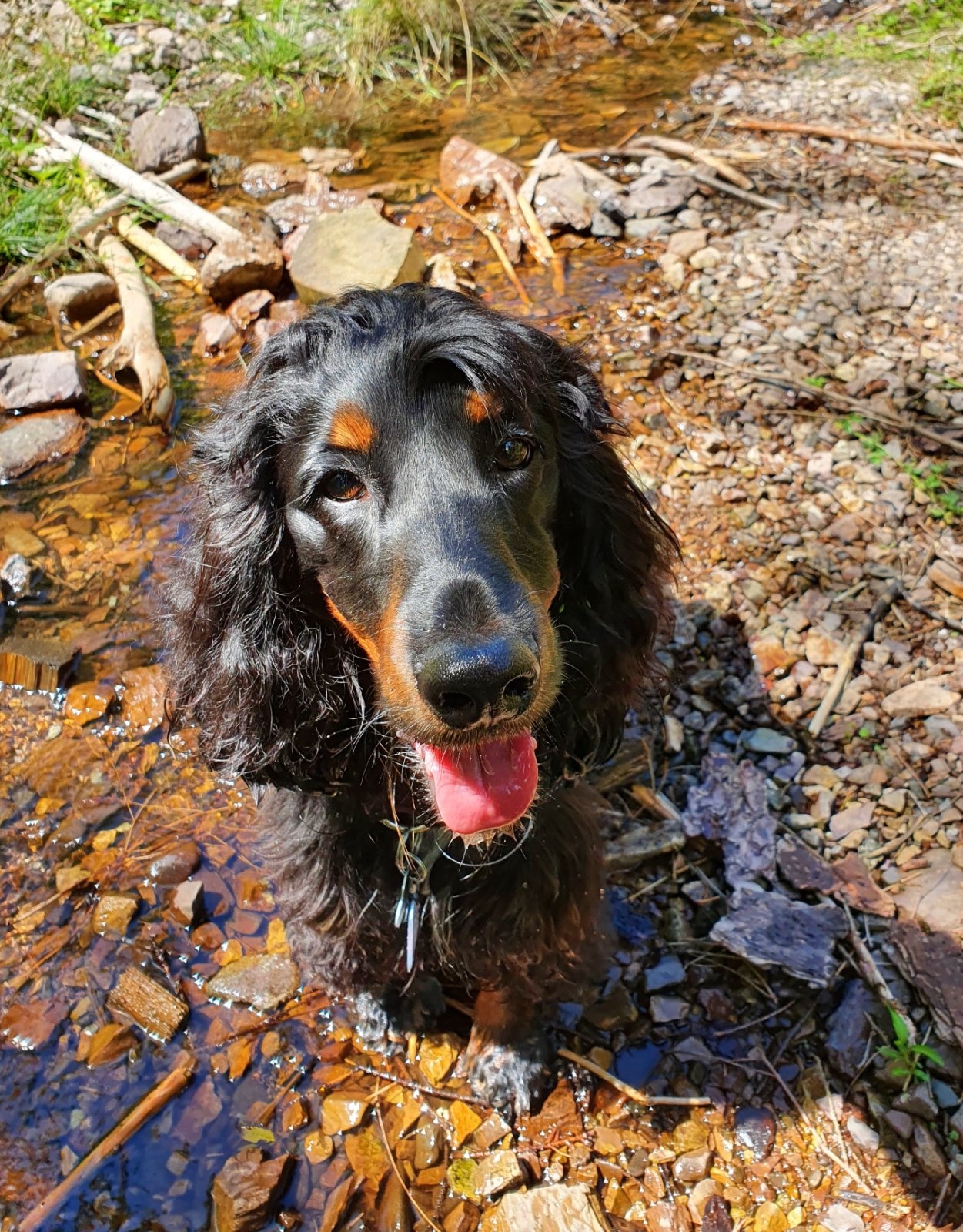Heute war es ganz schön warm. Aber zum Glück ging es auch an kühlen Bachläufen vorbei in denen ich meine heißen Pfötchen hineinhalten konnte. Hat ganz doll gezischt