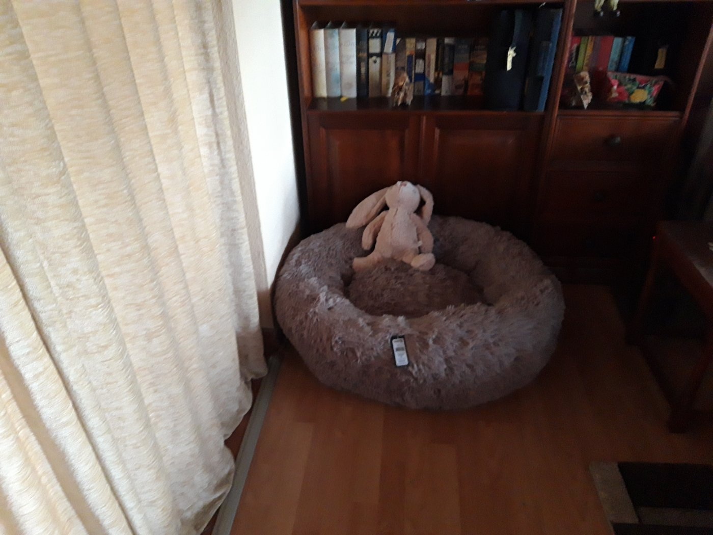 Die haben ja sogar ein Kuschelkörbchen! So ein ähnliches wie ich es in meiner Pflegestelle hatte. Das sieht ja schon ganz vielversprechend aus. Dann haben die Frau und der Mann mit mir geschmust. Ich habe versucht Ziwa zu begrüßen, aber die hat mich angebrummt. Dabei habe ich doch mit dem Schwänzchen gewedelt. Entweder sie ignoriert mich oder sie brummt mich an. Na, das kann ja heiter werden, weil ich glaube das Ziwa auch hier bleibt.