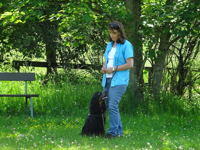 Zuletzt ging es dann noch mit Schleppleine auf eine grössere Runde. Immer wieder wurde auf dieser Strecke Rückruf und anderes Zeug ausprobiert/geübt - das hier war GsD der letzte Stopp, bevor es dann in den wohlverdienten Feierabend ging.