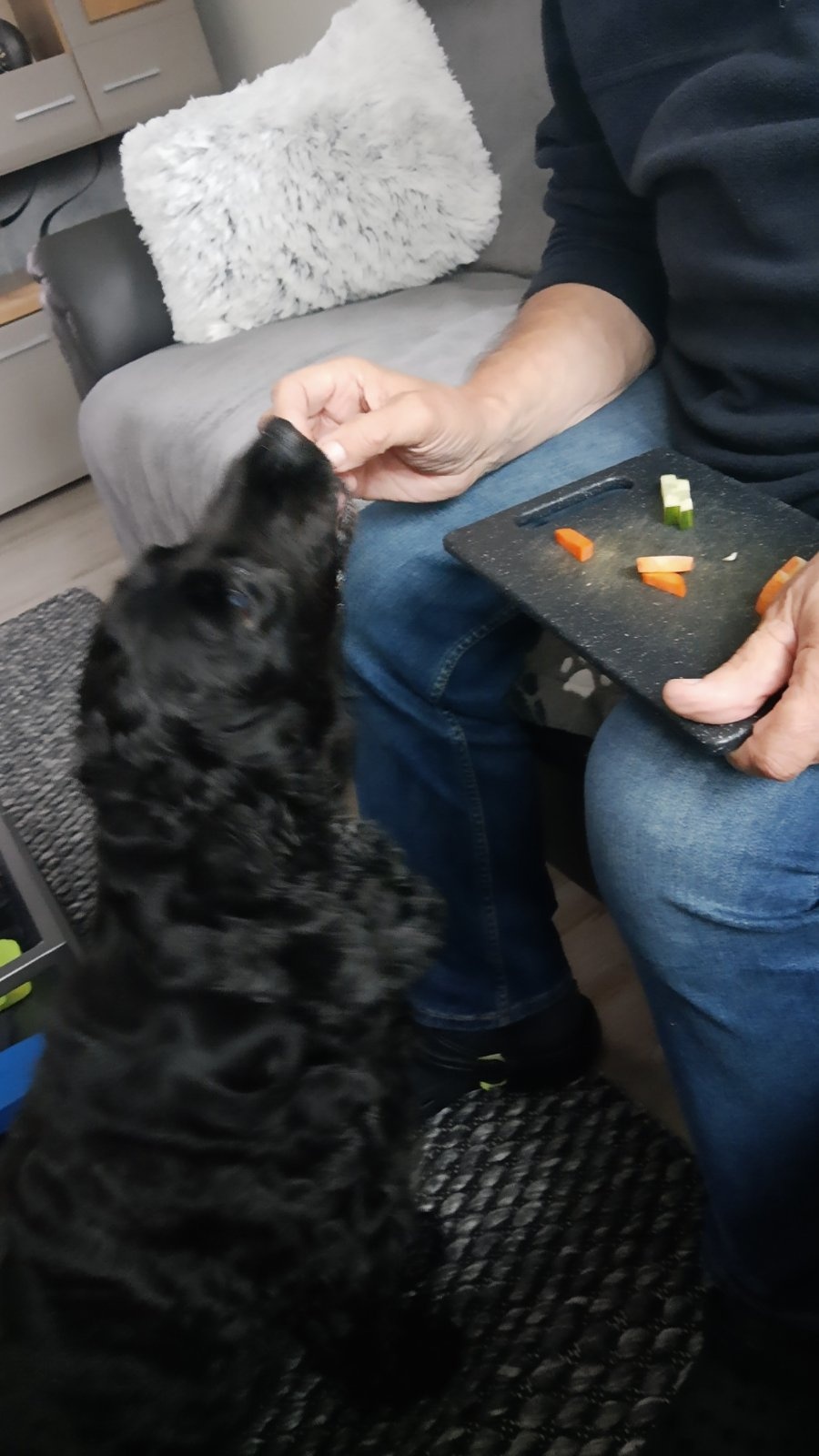 Auch das Lecker nach dem abendlichen Gassigang ist optimal: Möhren, Gurke und Apfel
