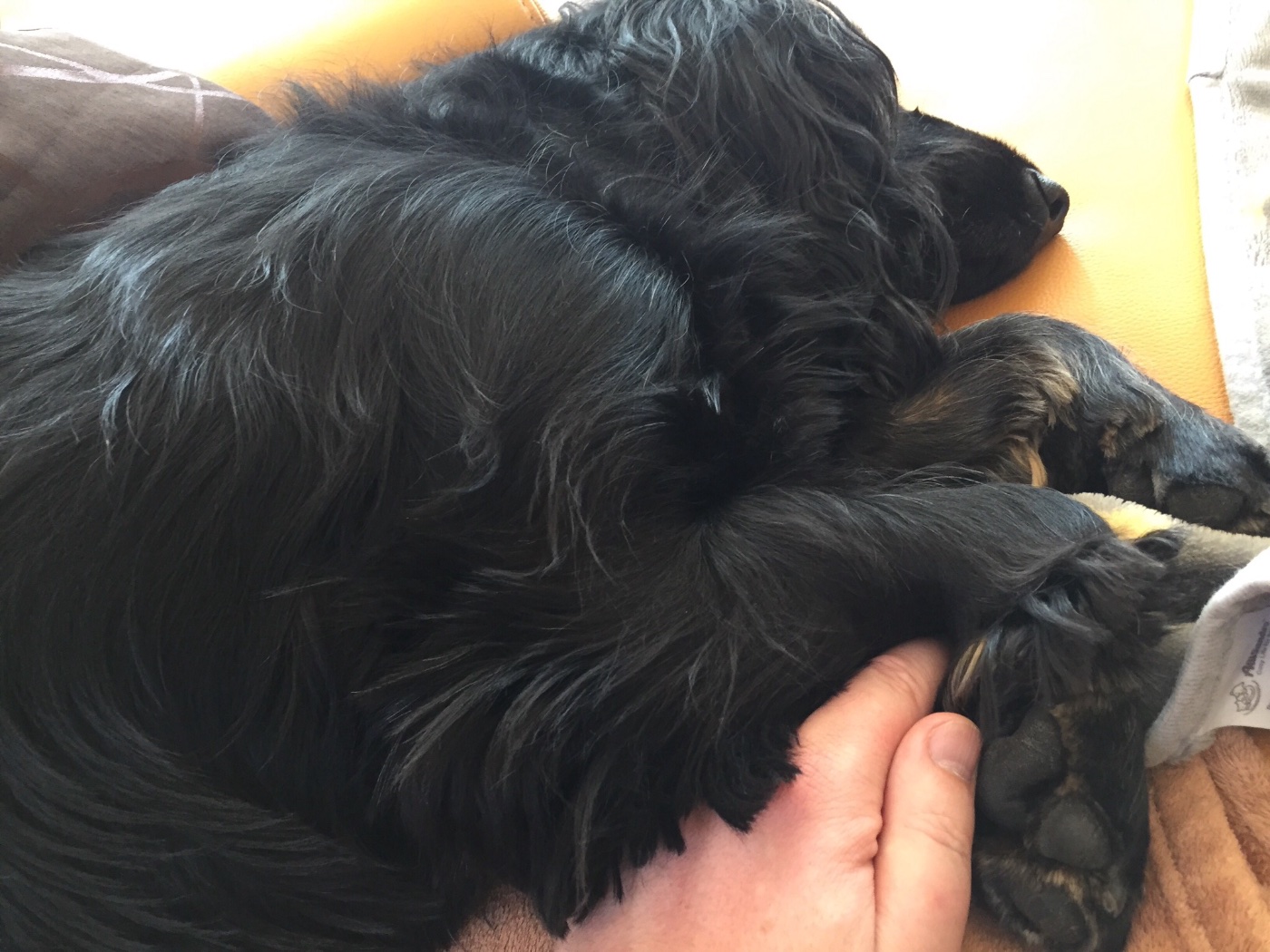 wir möchten euch mit ein paar Fotos und Videos zeigen, wie gut es uns geht. Natürlich möchten wir damit auch allen Mut machen und zeigen, dass es sich lohnt. Betty hat sich toll entwickelt, hat aber auch immer noch Angst. Das ist aber nicht schlimm, da es von Woche zu Woche besser wird. Sie ist sogar etwas eifersüchtig und holt sich auch bei mir mal Streicheleinheiten ab. Andererseits ist sie letztens sehr erschrocken, weil ich die Leine in die rechte Hand genommen habe. Mach ich sonst nicht. Ich hatte die Leckerlies einfach mal in die linke Hosentasche getan. Gedankenlos. Ich war ziemlich erschüttert, weil sie sofort duckte und wegzuckte, weil sie annahm, das ich sie mit der Leine schlagen will. Sowas... nun ist sie doch schon soooo lange bei uns und wir haben ihr nie etwas getan. Da sieht man mal, wie schlimm es ihr früher ergangen sein muss. Sie hat dann zwar ihre Streicheleinheiten bekommen, wir sind trotzdem traurig. So ein schönes Tier und so viel Leid. Jetzt liegt sie neben mir und schläft. Wir hoffen, das sie irgendwann fast angstfrei sein kann.